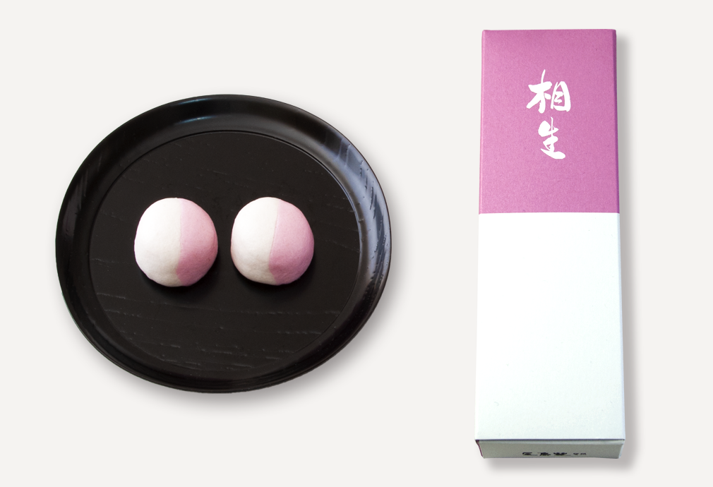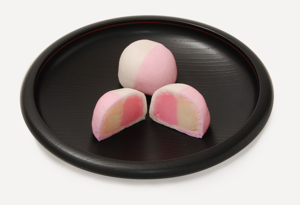 中餡と皮をそれぞれ薄紅と白の抱き合わせにし、薯蕷まんじゅうとさせて頂きました
